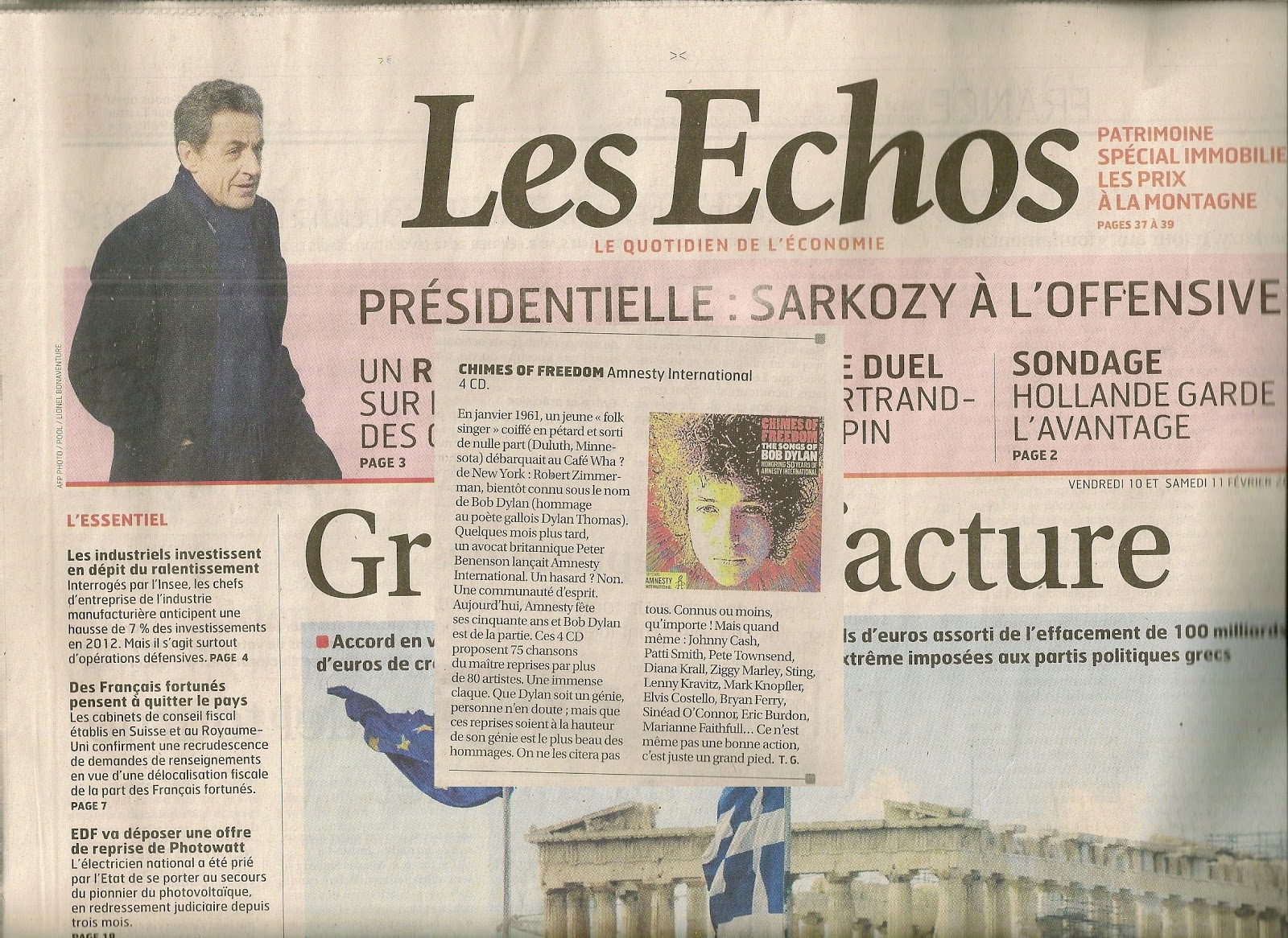 Chimes Of Freedom dans Les Echos par Bérengère | Fév 29, 2012 | chimes of freedom, les echos, Presse | 0 commentaires