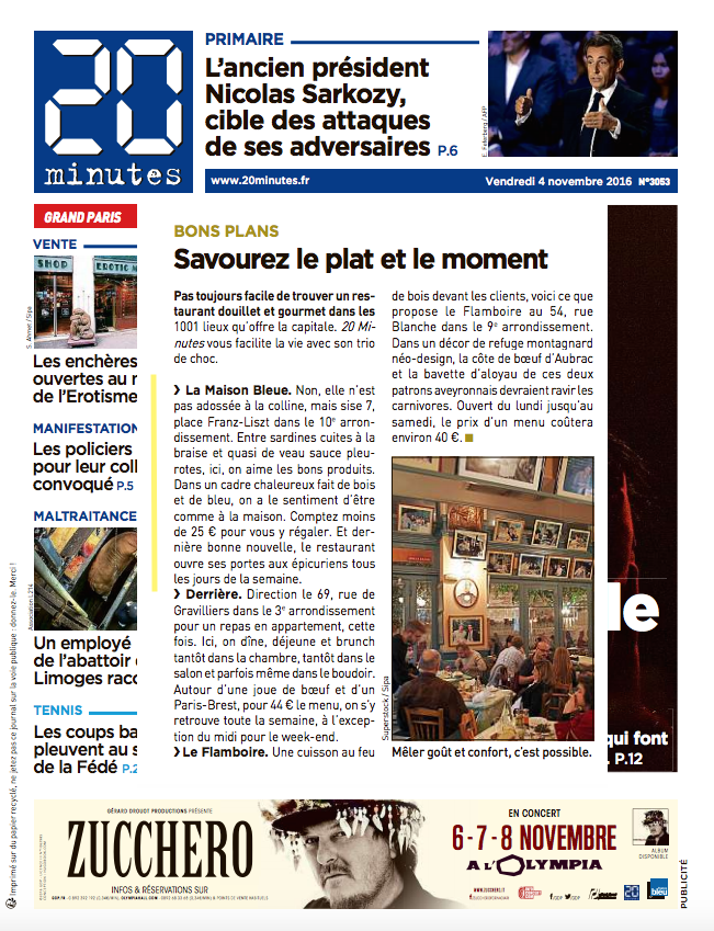 La Maison Bleue dans 20 Minutes par Bérengère | Nov 7, 2016 | 20 Minutes, la maison bleue, Presse | 0 commentaires