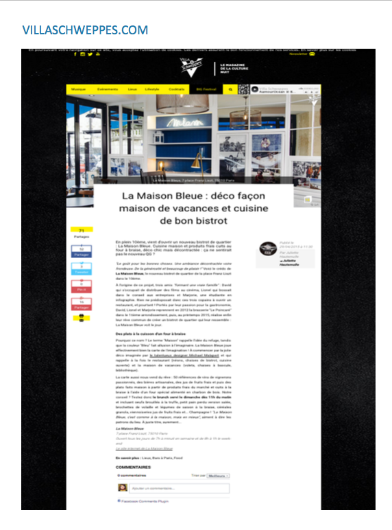 La Maison Bleue sur villaschweppes.com par Bérengère | Juin 12, 2015 | la maison bleue | 0 commentaires
