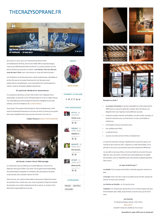 Les Fauves sur thecrazysoprane.fr par Bérengère | Juin 11, 2017 | les fauves, thecrazysoprane.fr | 0 commentaires