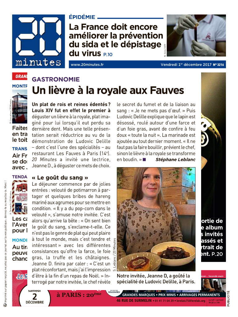 Les Fauves dans 20 Minutes par Bérengère | Déc 1, 2017 | 20 Minutes, les fauves, Presse | 0 commentaires
