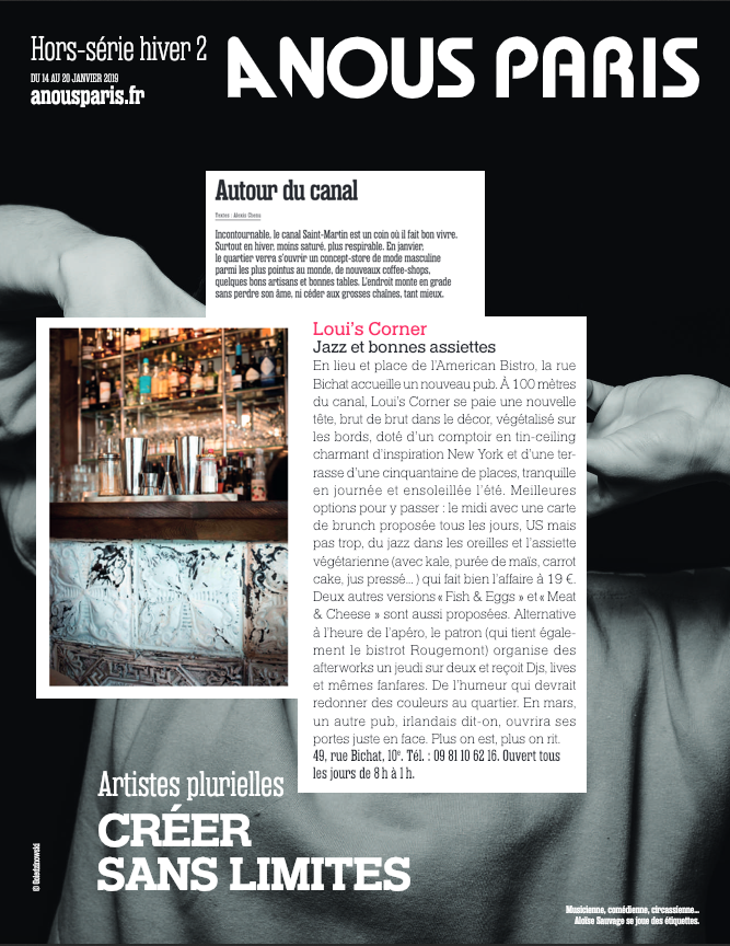 Louis’ Corner dans A Nous Paris par Bérengère | Jan 30, 2019 | a nous paris, Loui's Corner, Presse | 0 commentaires