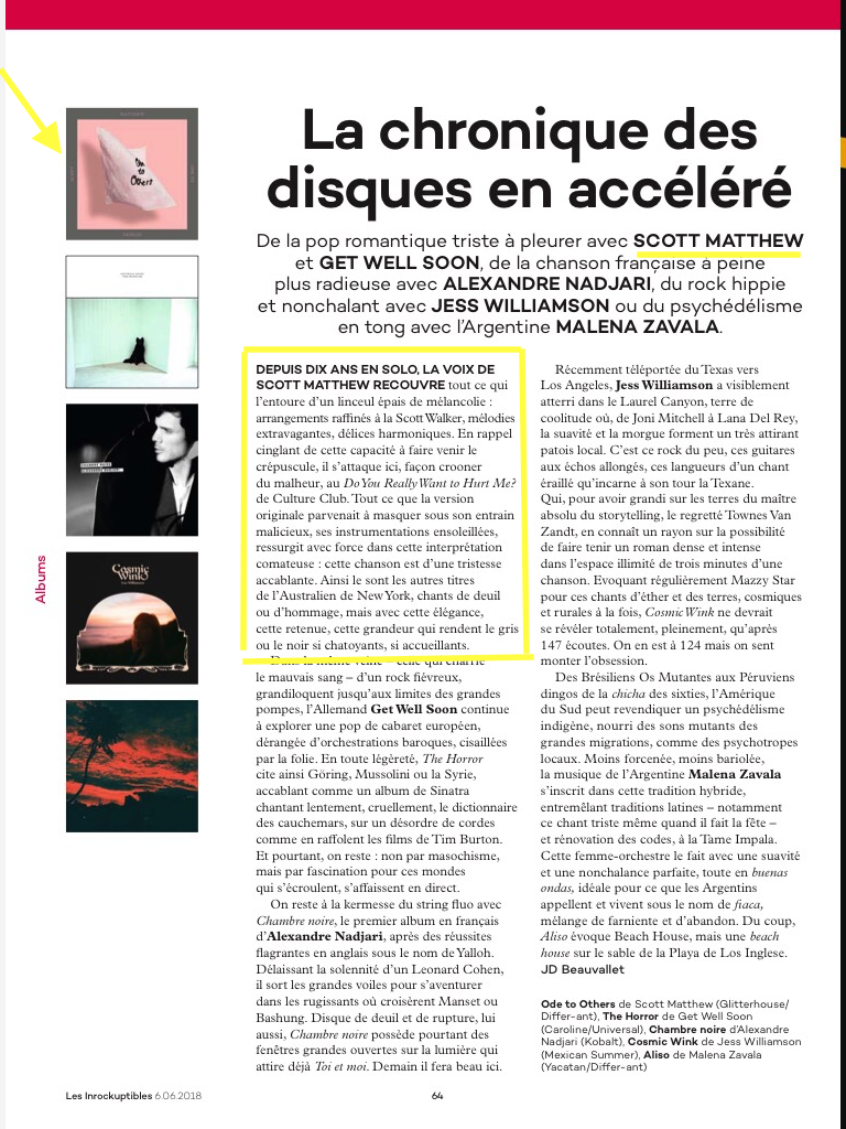 Scott Matthew dans Les Inrockuptibles par Bérengère | Juin 12, 2018 | les inrockuptibles, scott matthew | 0 commentaires